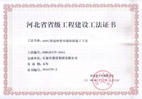 河北省省組工程建設(shè)工法證書(shū)